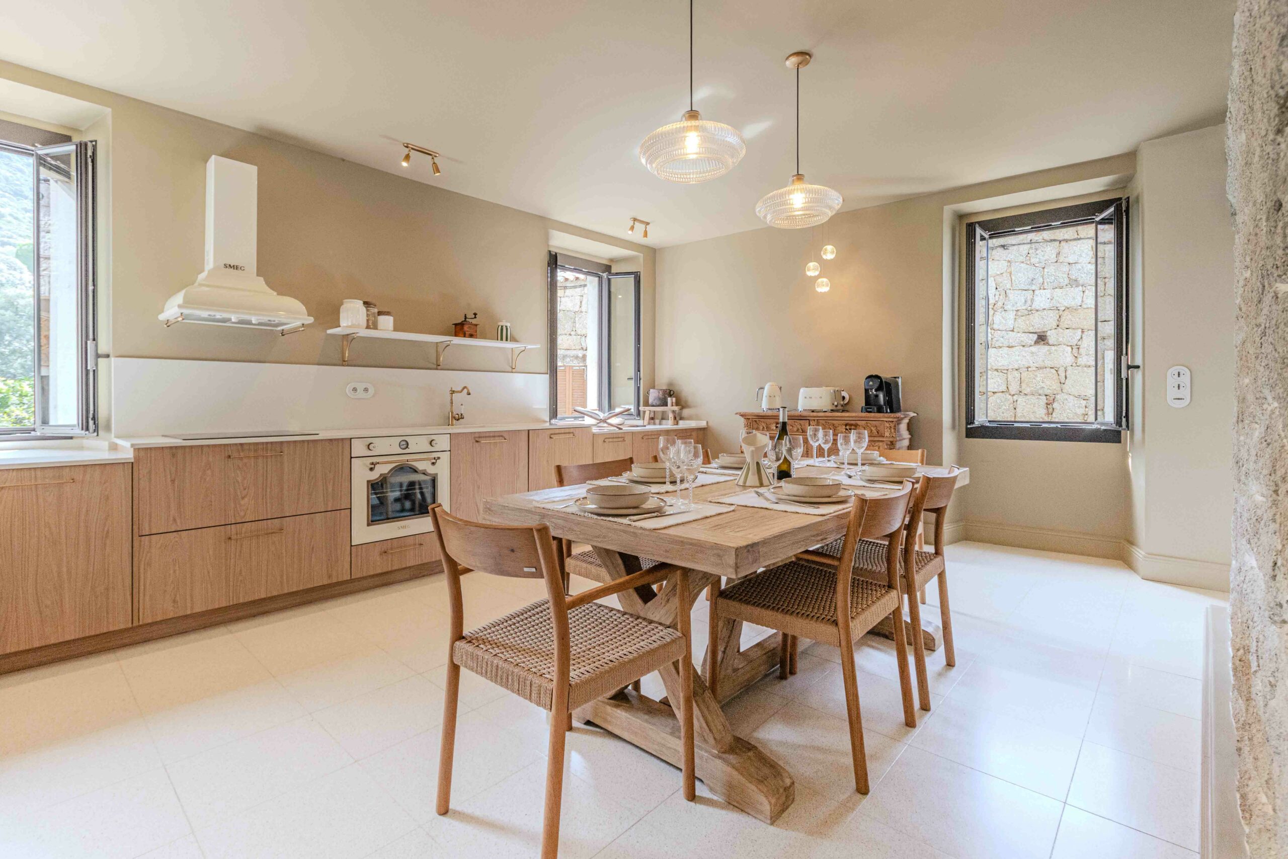 La Torra di l’Alba a retrouvé sa place dans le paysage, fière et discrète à la fois. Restaurée avec soin, cette ancienne maison forte conjugue aujourd’hui l’âme des bâtisses corses et le confort d’une maison de prestige. Pierres d’origine, lignes épurées, volumes ouverts sur le maquis… L’accueil commence ici, dès le premier regard.